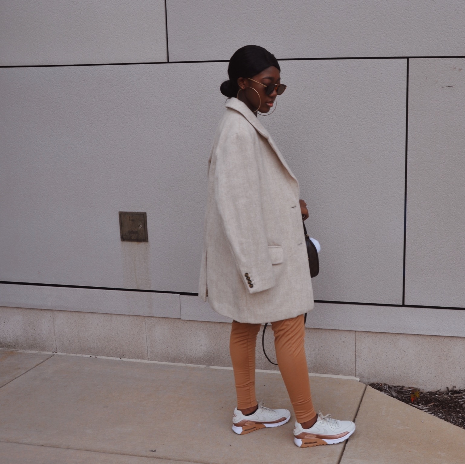 Three looks in one post?! In this post, I want to share one main look + two other looks featuring outfits that I received from Femme Luxe. Femme Luxe is a UK based brand that sells the cutest clothing for young women at AMAZING prices. The first look is the main look for this post and I will be sharing details on the other two in the next few weeks. In the first look, I am wearing their beige loungewear co-ord set called "Camel Crop Loungewear Set- Deanna" with a long light beige wool coat from H&M. Then, I accessorize with a small handbag, sunglasses, and jewelry to provide the perfect casual and comfy Fall look. Beige is literally Fall's theme color. While it looks just as good in the Spring, it gives a different vibe in Fall when beige oversized sweatshirts or oversized puffer jackets along with gold jewelry are in.